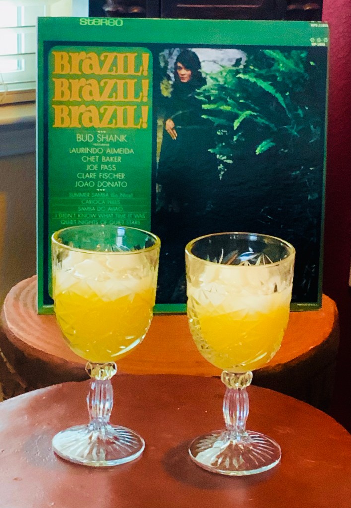 It’s finally Friday! Yeah! We just picked up the album “Brazil! Brazil! Brazil!” a breezy, lovely album featuring jazz greats Bud Shank, Laurindo Almeida, Chet Baker, Joe Pass, Clare Fischer and Joao Donato! If you don’t have this one in your collection, get it! It makes Happy Hour just perfect, as do a pair of Saturns, made by Mr. C! Cheers!