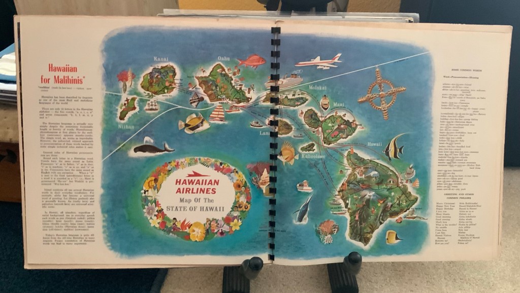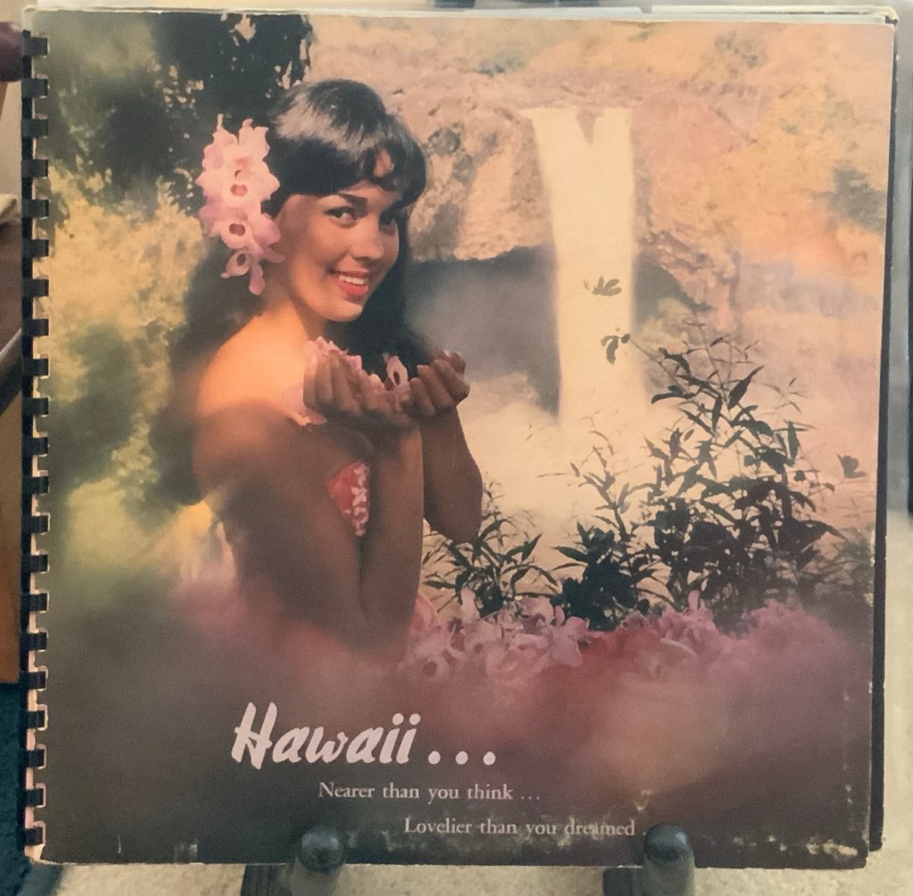 Mr. C and I finally got a chance to relax today and listen to some records we have gotten recently! Here’s one of them! “Honeymoon in Hawaii” by The Hilo Hawaiians is a lovely album that instantly transports you to the tropical islands. But…wait! There’s more! The package also contains a spiral bound travel guide highlighting some of the cultural and natural treasures of Hawaii! Here are some pages from the album package! We hope you, too, are enjoying the holiday with some music…and maybe a tiki drink…or two! Thanks for listening and for your constant support! Cheers, Baby!